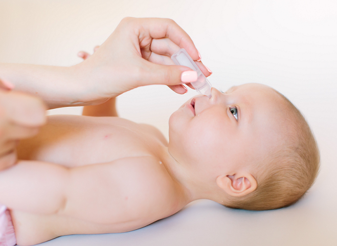 Nước muối xịt mũi giúp làm sạch mũi cho trẻ. Ảnh: Shutterstock