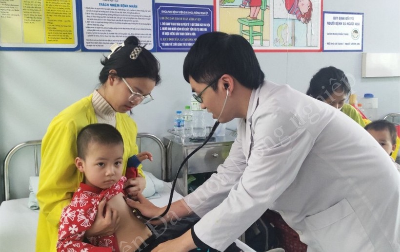 Bác sĩ thăm khám cho bệnh nhi. Ảnh: Thúy Quỳnh