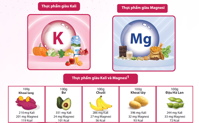 Kali và Magnesi là hai khoáng chất thiết yếu có vai trò quan trọng trong cơ thể. Đặc biệt là hệ tim mạch, tiêu hóa, tiết niệu và hoạt động của cơ bắp. Magnesi tham gia vào hơn 600 phản ứng sinh hóa trong cơ thể, tham gia quá trình tạo năng lượng, tổng hợp protein.