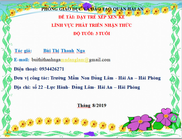 Đơn vị công tác: Trường Mầm Non Đằng Lâm - Hải An – Hải Phòng