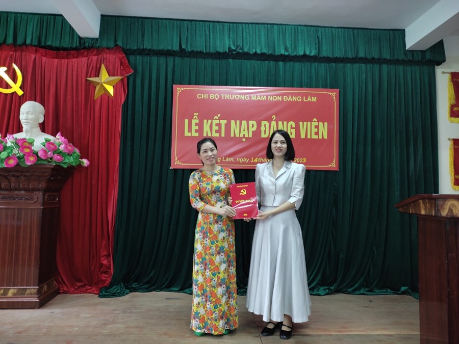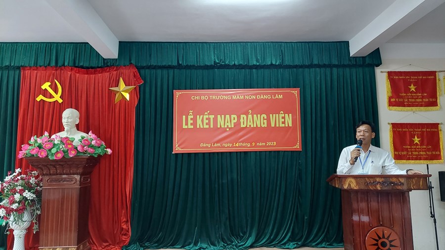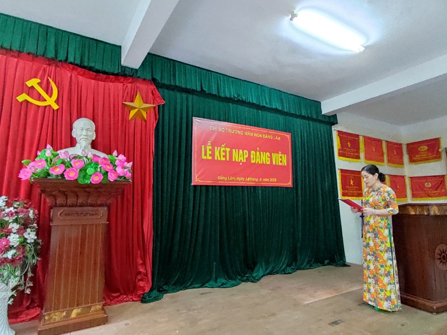 Sáng ngày 14/9/2023, Chi bộ trường Mầm non Đằng Lâm đã tổ chức lễ kết nạp Đảng viên mới cho quần chúng ưu tú Phạm Thị Tươi. Tham dự buổi lễ có đồng chí Lê Văn Nguyên – Phó Bí thư Thường trực Đảng ủy, Chủ tịch Hội đồng nhân dân phường Đằng Lâm; đồng chí Nguyễn Hồng Bích Thủy – Bí thư Đoàn TNCS Hồ Chí Minh phường Đằng Lâm cùng 100% Đảng viên trong chi Bộ nhà trường.