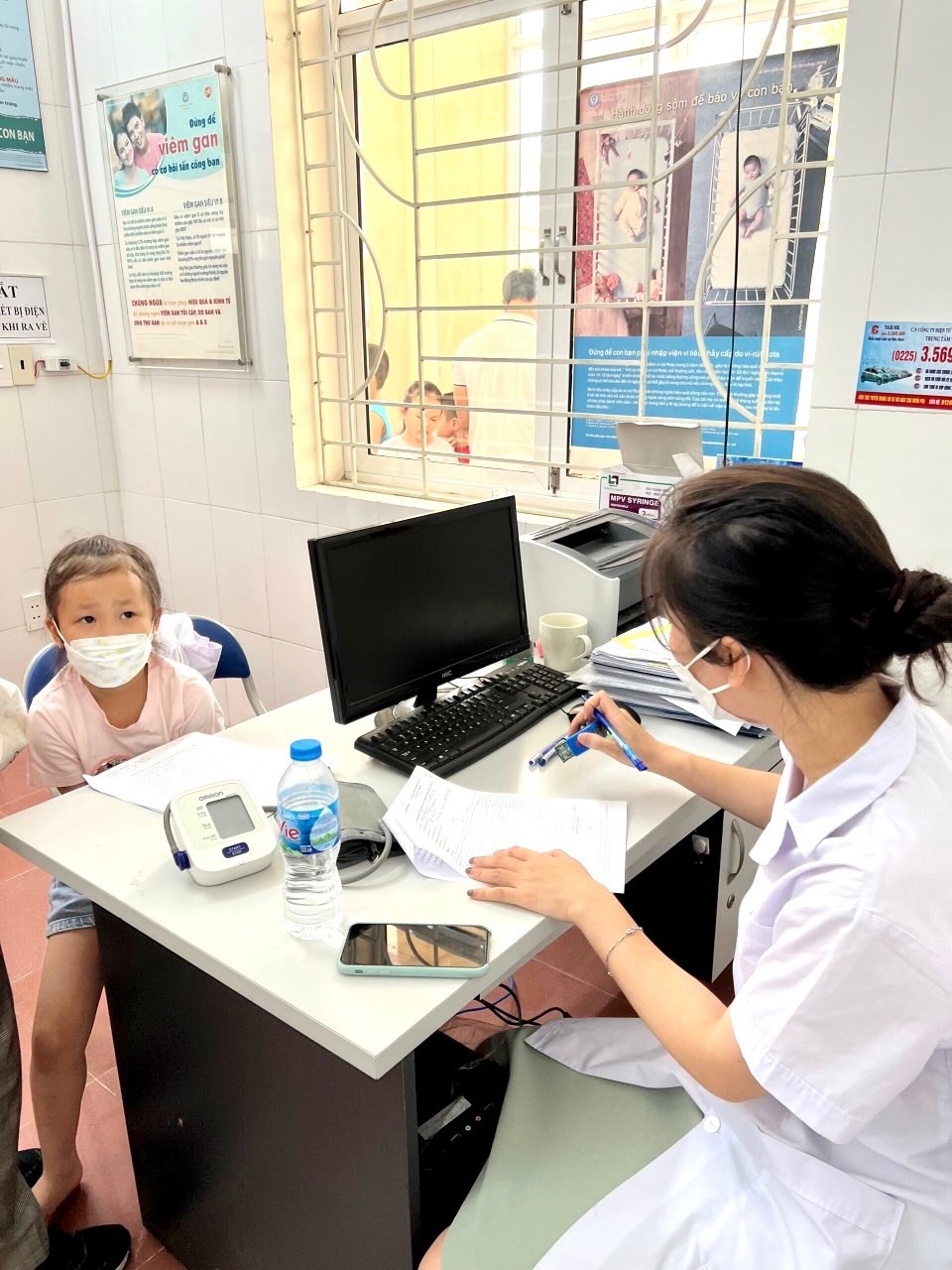 Phụ huynh đã đưa trẻ đến điểm tiêm dúng thời gian thông báo. Trong quá trình tiêm các bé được các cán bộ y tế khám sàng lọc, chăm sóc các bé chu đáo sau khi tiêm xong. Bé nào cũng mạnh dạn, tự tin và không có bê nào khóc nhè đâu nhé