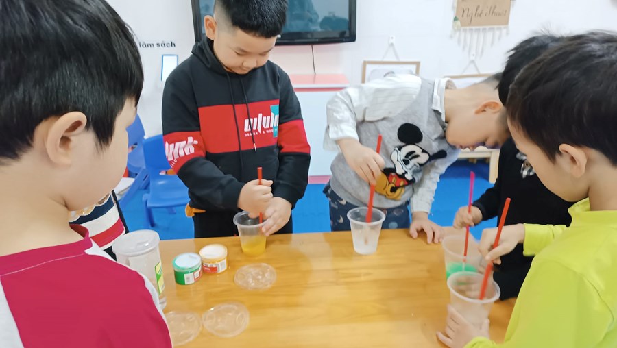 Hôm nay, các con cùng cô giáo tìm hiểu về nước,các con đã nhớ được các đặc tính của nước: Không màu, không mùi, không vị, không có hình dạng cố định. Nước có thể hoà tan một số chất, và có thể bị đổi màu.