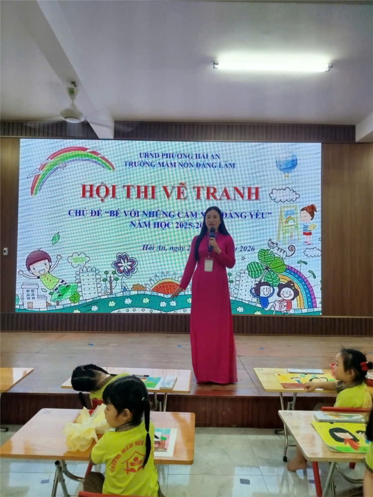 Thực hiện Kế hoạch số 39/KH-MNĐL, ngày 9/10/2025 của trường mầm non Đằng Lâm về thực hiện giải pháp sáng tạo "Giáo dục cảm xúc xã hội cho trẻ mầm non thông qua các hoạt động thâm mĩ" năm học 2025 - 2026; Thực hiện kế hoạch trọng tâm tháng 4/2026, ngày 23/4/2026 Trường Mầm non Đằng Lâm đã tổ chức Hội thi vẽ tranh với chủ đề “Bé với