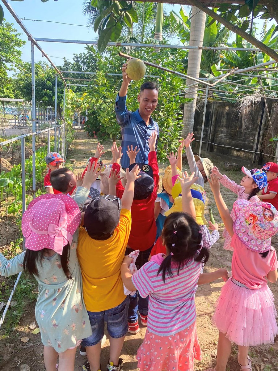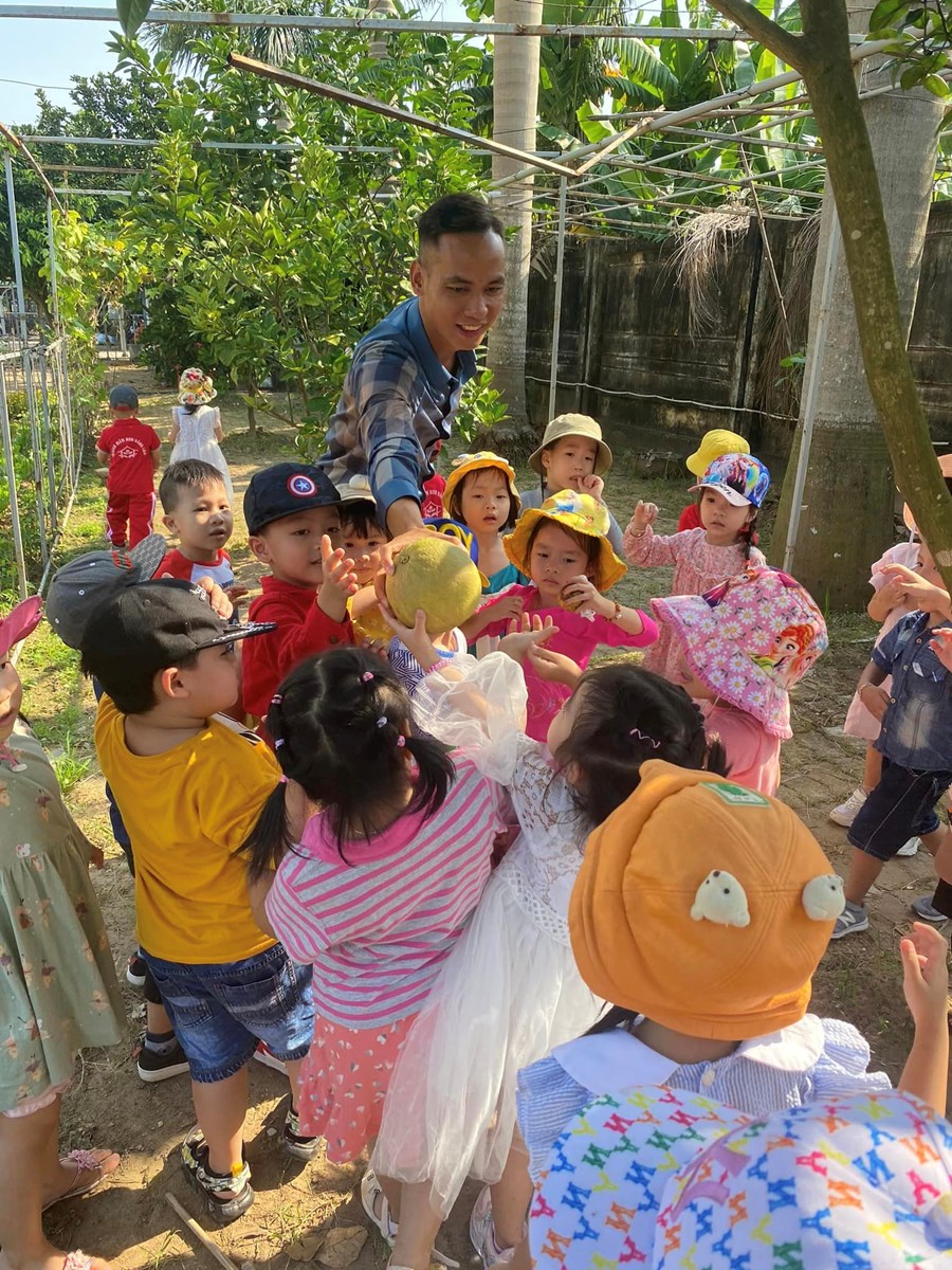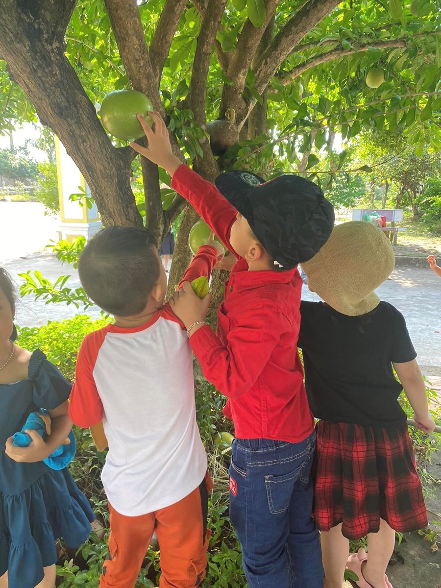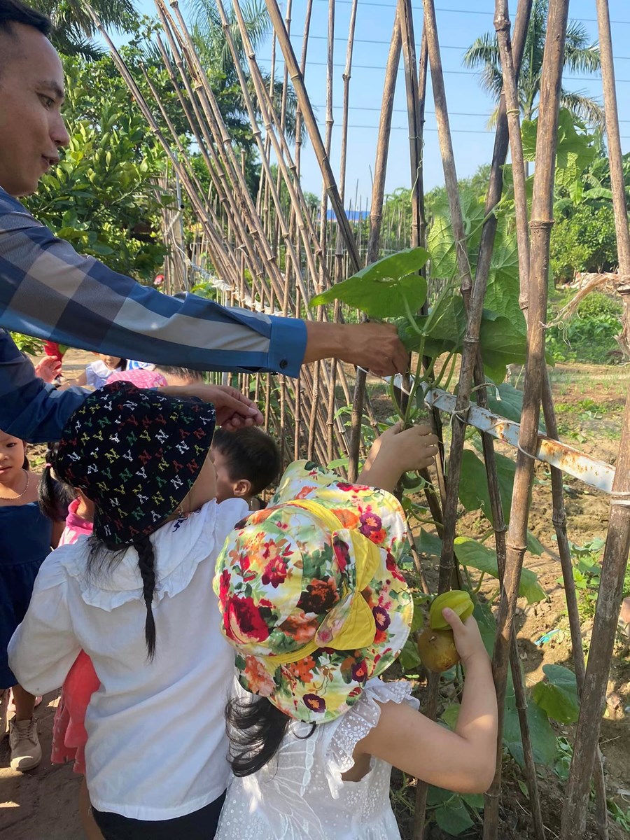 Tại đây, các bé được thăm cảnh quan nhà trường, vườn trồng các loại quả, vườn trồng rau củ, vườn hoa... các bé đã được tự tay trải nghiệm hái quả và rau củ trong khuôn viên vườn trường.