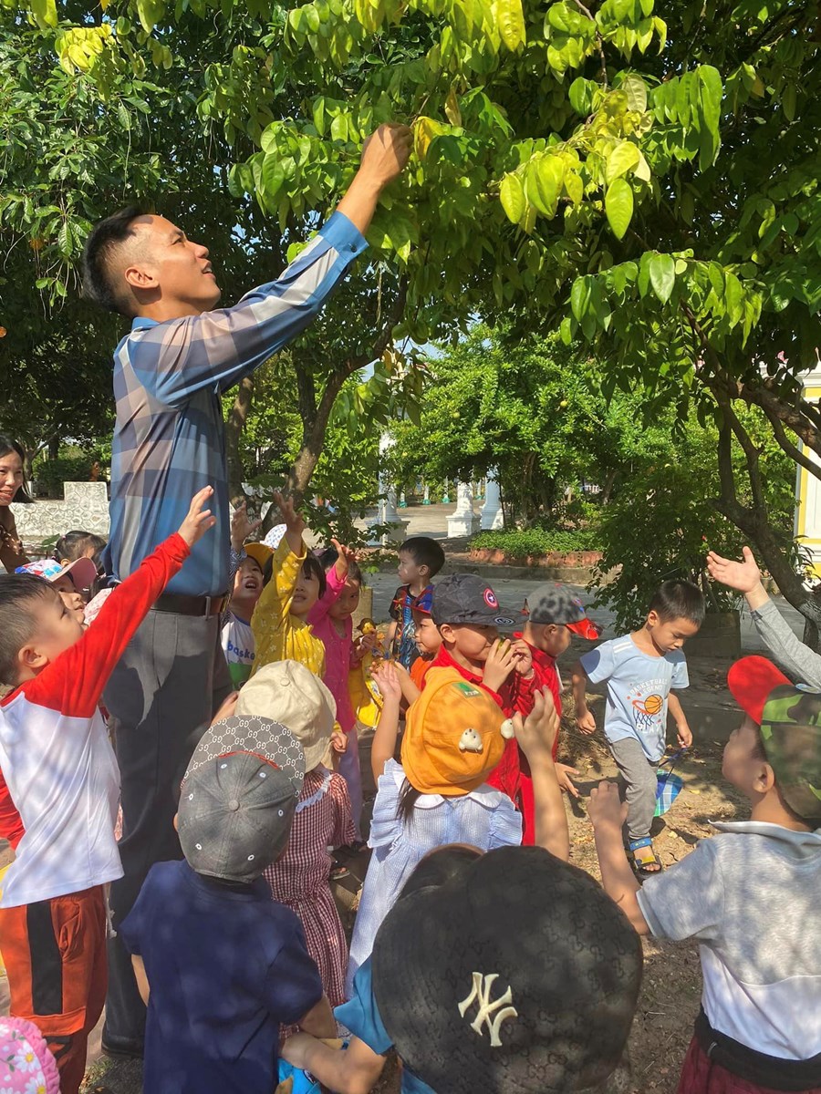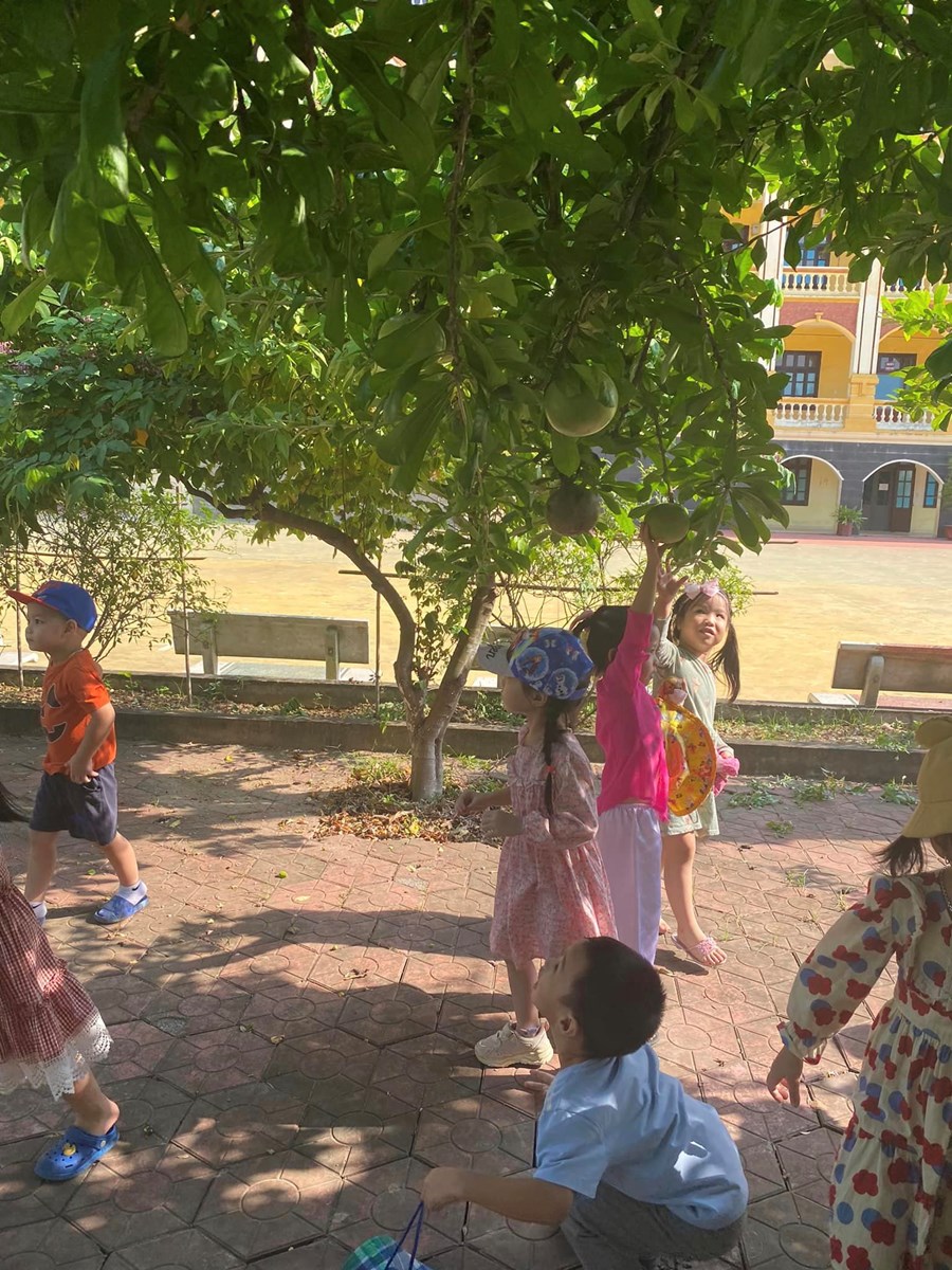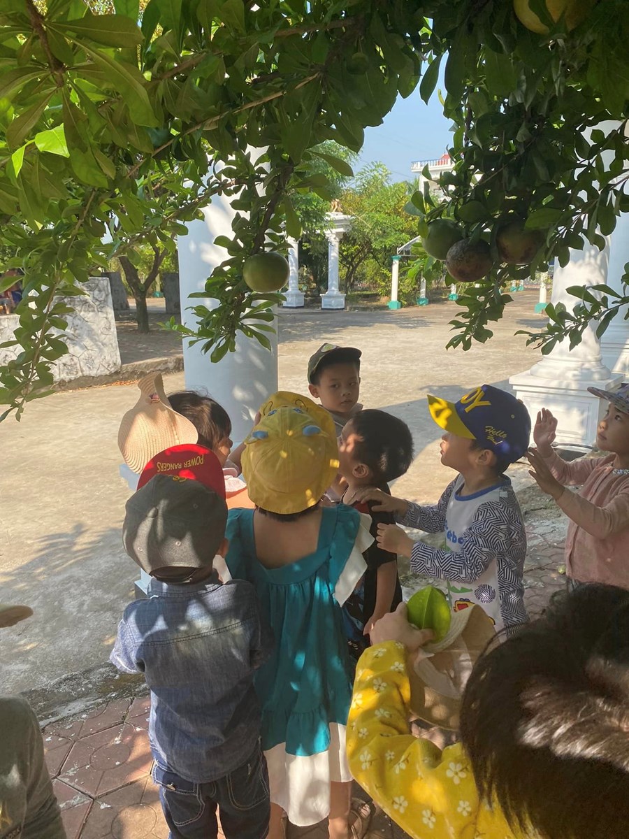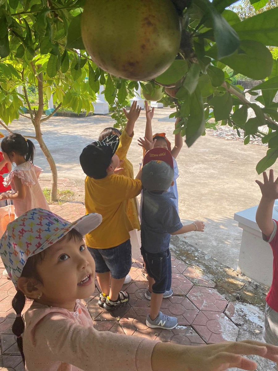 Tại đây, các bé được thăm cảnh quan nhà trường, vườn trồng các loại quả, vườn trồng rau củ, vườn hoa... các bé đã được tự tay trải nghiệm hái quả và rau củ trong khuôn viên vườn trường.