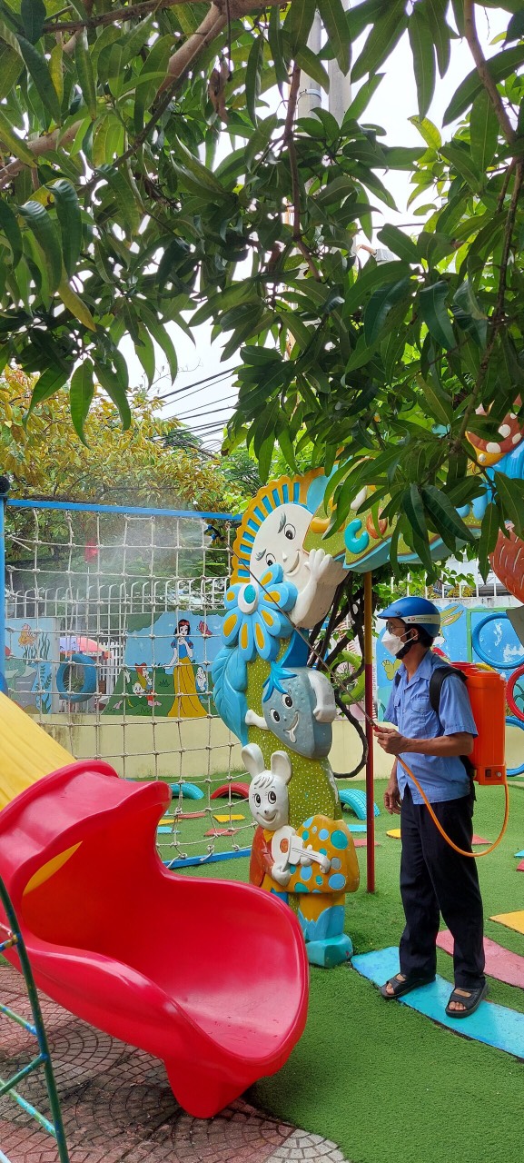 Để đảm bảo an toàn cho trẻ, trường Mầm non Đằng Lâm đã tổ chức phun thuốc muỗi toàn bộ các lóp học, bếp ăn, vườn cổ tích, khuôn viên trong và ngoài nhà trường