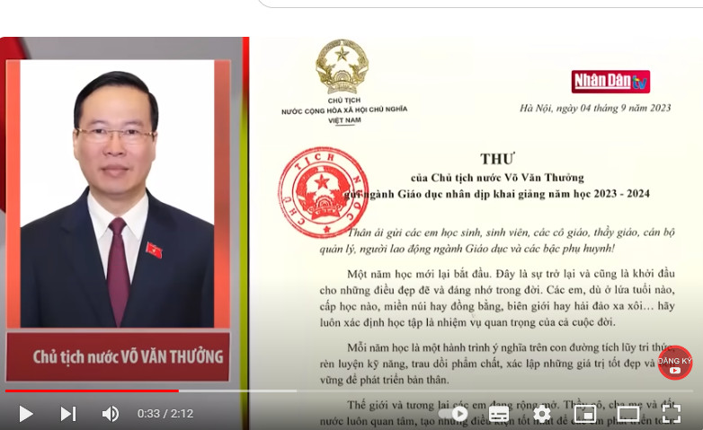 Một năm học mới lại bắt đầu. Đây là sự trở lại và cũng là khởi đầu cho những điều đẹp đẽ và đáng nhớ trong đời. Các em, dù ở lứa tuổi nào, cấp học nào, miền núi hay đồng bằng, biên giới hay hải đảo xa xôi... hãy luôn xác định học tập là nhiệm vụ quan trọng của cả cuộc đời.