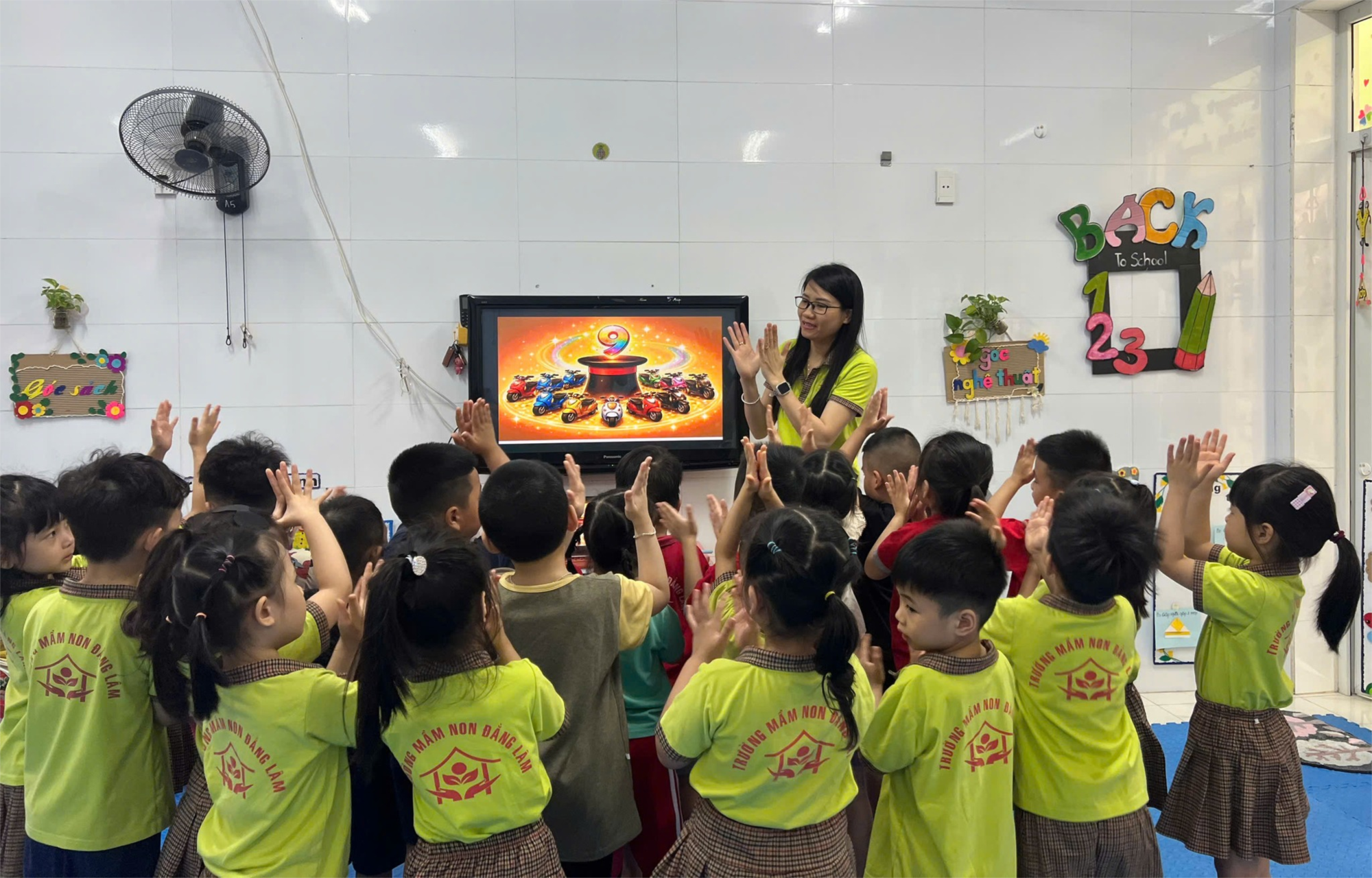 Trong tiết học “Chia nhóm có 9 đối tượng thành 2 phần” của lớp 5A5 – Trường Mầm non Đằng Lâm, các con được trải nghiệm phương pháp học tập mới kết hợp ứng dụng trí tuệ nhân tạo (AI), giúp bài học trở nên thú vị và sôi nổi hơn.