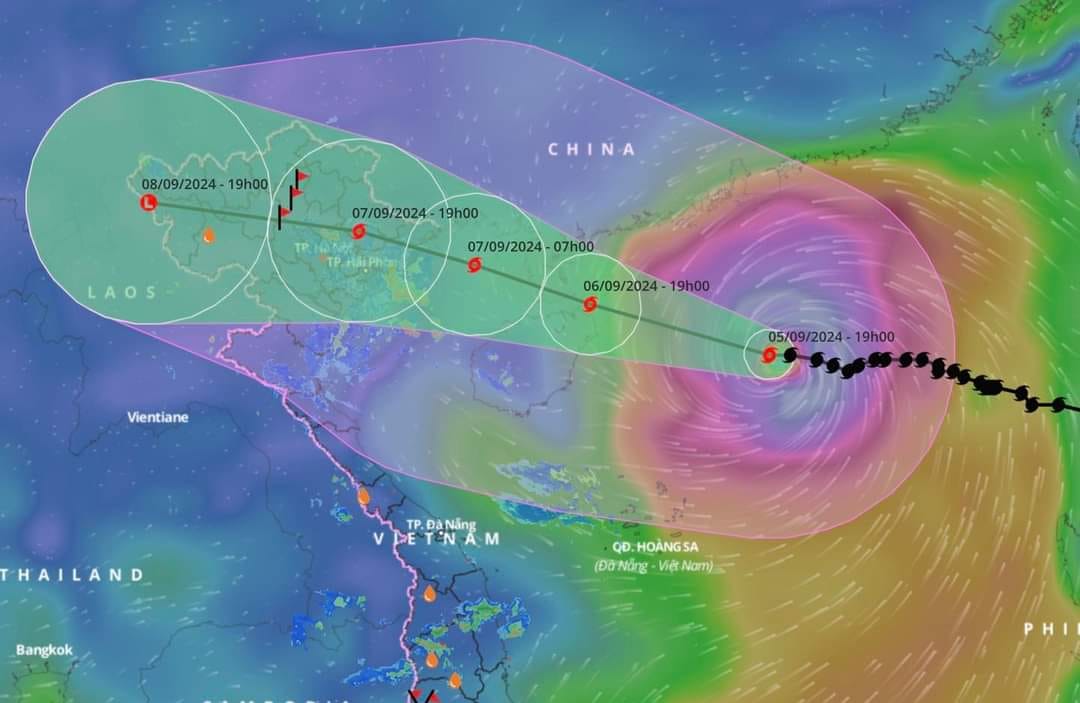 Hồi 19h tối 5/9, siêu bão Yagi cách đảo Hải Nam (Trung Quốc) khoảng 365km về phía đông. Cường độ bão vẫn đang mạnh cấp 16 (184-201km/h), giật trên cấp 17.