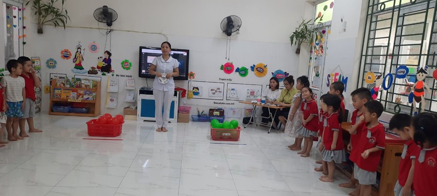 Hưởng ứng phong trào thi đua 100% giáo viên đã đăng ký tiết dạy với nhiều đề tài mới lạ tạo được sự hứng thú thu hút được trẻ tham gia các hoạt động.