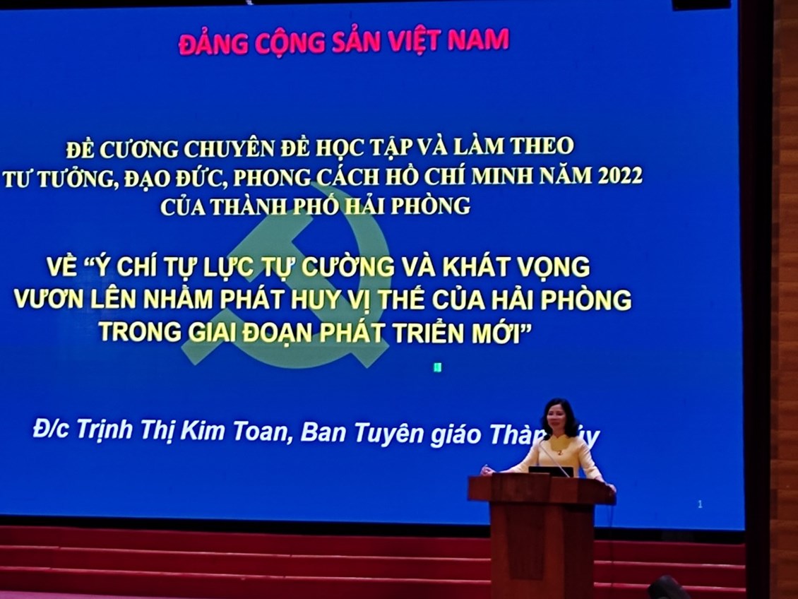 - Tiếp tục học tập chuyên đề toàn khóa, chuyên đề hằng năm về tư tưởng, đạo đức, phong cách Hồ Chí Minh, chuyên đề “Học tập và làm theo lời dạy của Chủ tịch Hồ Chí Minh với Đảng bộ và Nhân dân thành phố Hải Phòng” gắn với thực hiện nhiệm vụ chính trị của ngành, cơ quan, đơn vị.