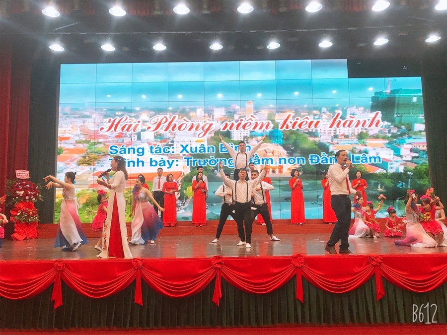 Giáo dục quận Hải An nói chung cũng như trường MN Đằng Lâm nói riêng vinh dự được thể hiện chương trình văn nghệ chào mừng tại hội nghị ! Cô trò nhà trường cùng các đơn vị kết nghĩa biểu diễn thành công tiết mục “Hải Phòng niềm kiêu hãnh“.( Tg: Xuân Bình). Trân trọng cảm ơn UBND Phường Đằng Lâm, Công An phường Đằng Lâm, Quận đội, Trung tâm xử lý tin đã ủng hộ, tạo điều kiện và phối hợp cùng nhà trường!