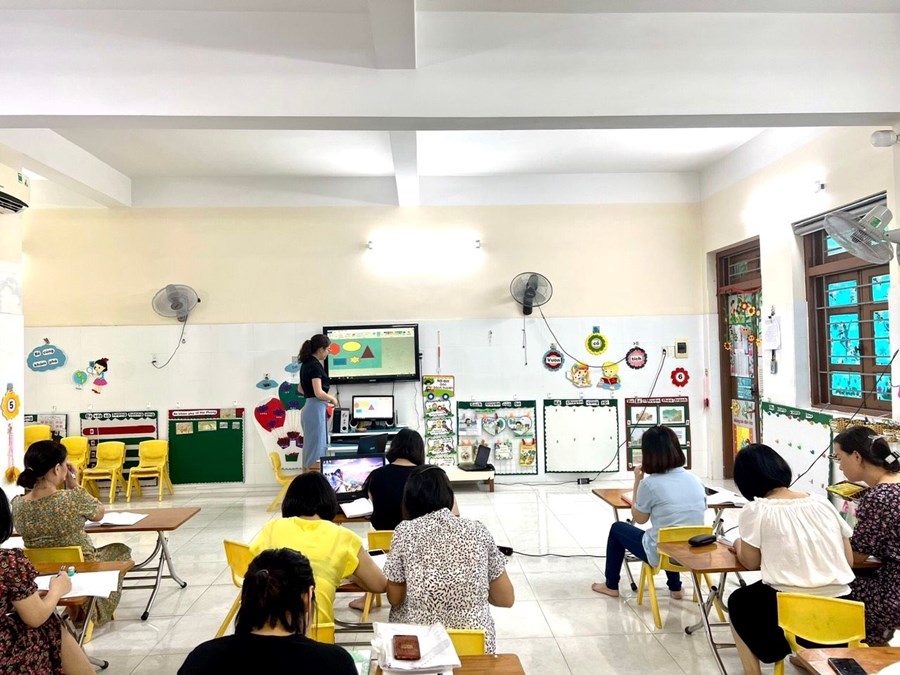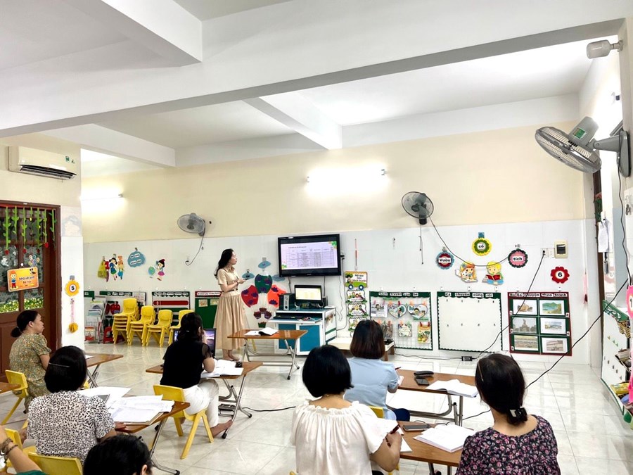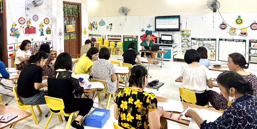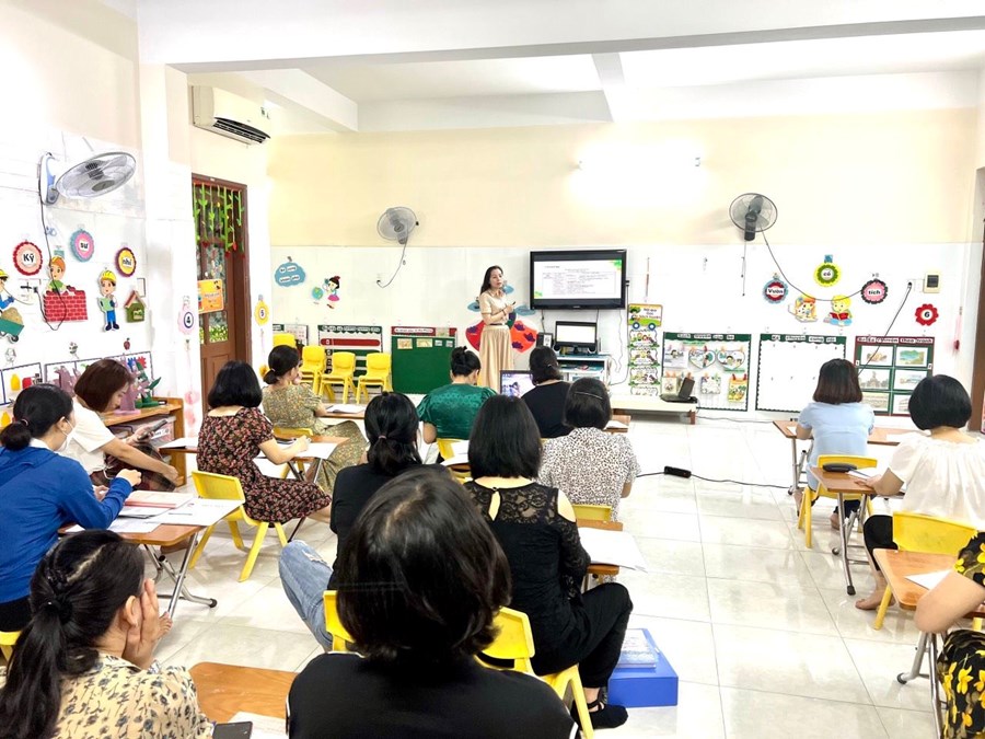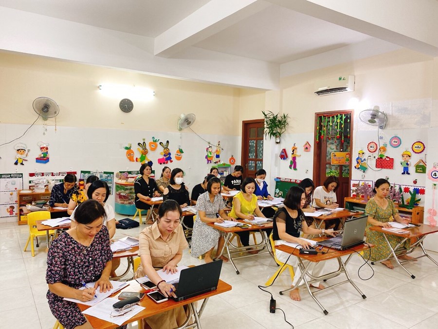 Thực hiện Công văn số 113/GDĐT ngày 09/8/2022, ngày 11, 12 tháng 8 năm 2022 đội ngũ cốt cán ngành học mầm non trong toàn quận tham dự Hội thảo tập huấn chuyên môn năm học 2022-2023 do Phòng GD&ĐT quận Hải An tổ chức tại trường mầm non Đằng Lâm.