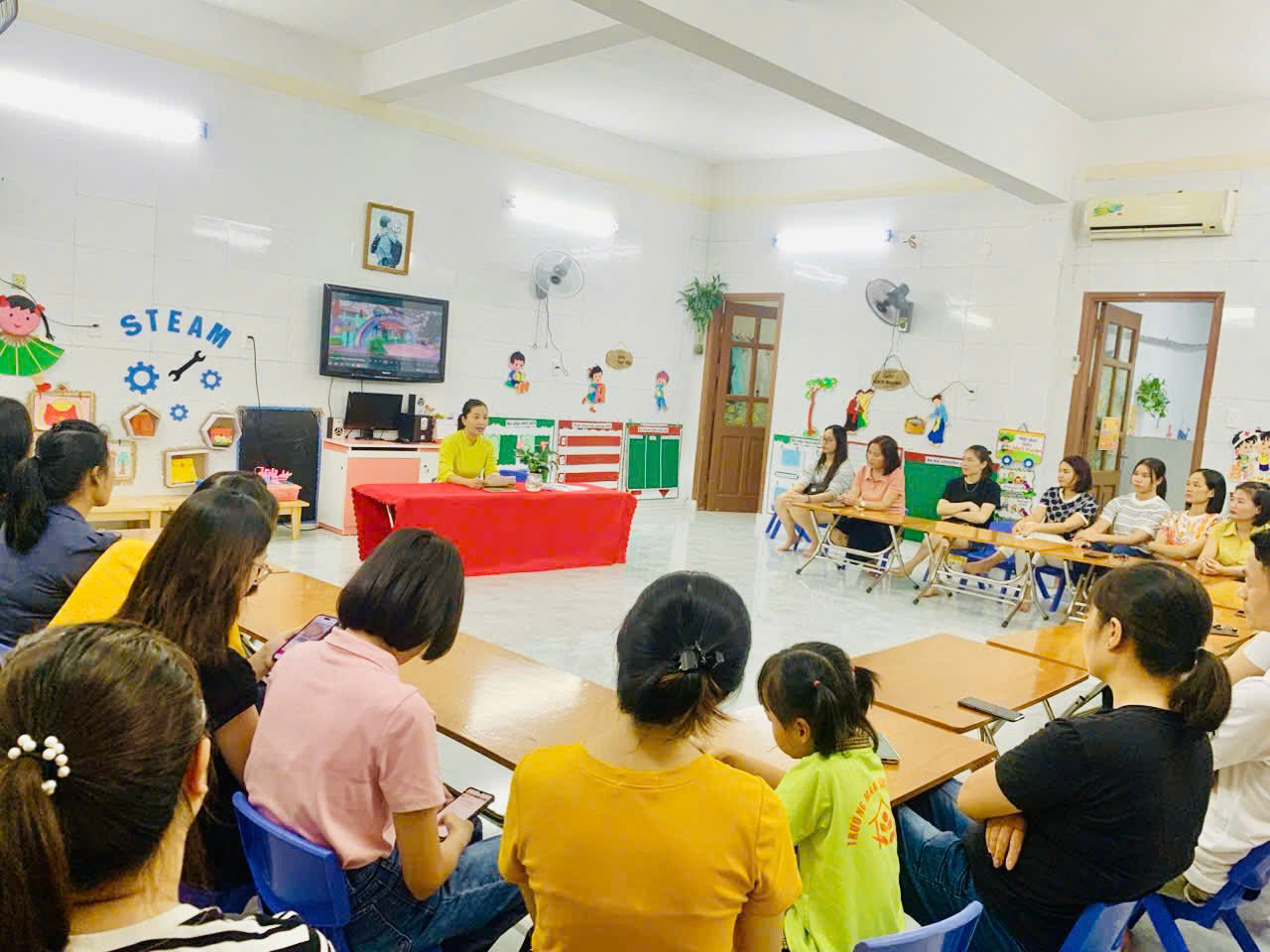 17h thứ 3 ngày 24/9/2024 Trường MN Đằng Lâm triển khai buổi họp phụ huynh với đại diện cha mẹ học sinh các lớp. Tại cuộc họp, nhà trường báo cáo kết quả năm học 2023-2023, triển khai nhiệm vụ năm học 2024-2025; bầu Ban đại diện cha mẹ học sinh nhà trường. Buổi họp kết thúc với 100% ý kiến nhất trí với các nội dung của buổi họp.