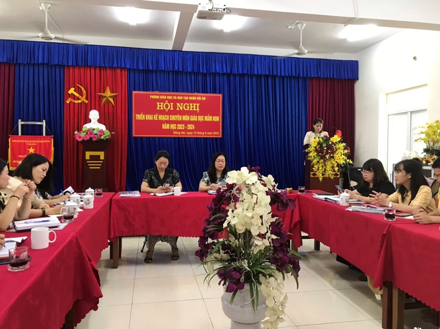 8h sáng ngày 13 tháng 9 năm 2023, BGH trường mầm non Đằng Lâm cùng với đồng chí Đinh Thị Yến, tổ trưởng tổ 5 tuổi tham dự hội nghị “Triển khai kế hoạch chuyên môn giáo dục mầm non năm học 2023-2024” tại trường mầm non Đằng Hải