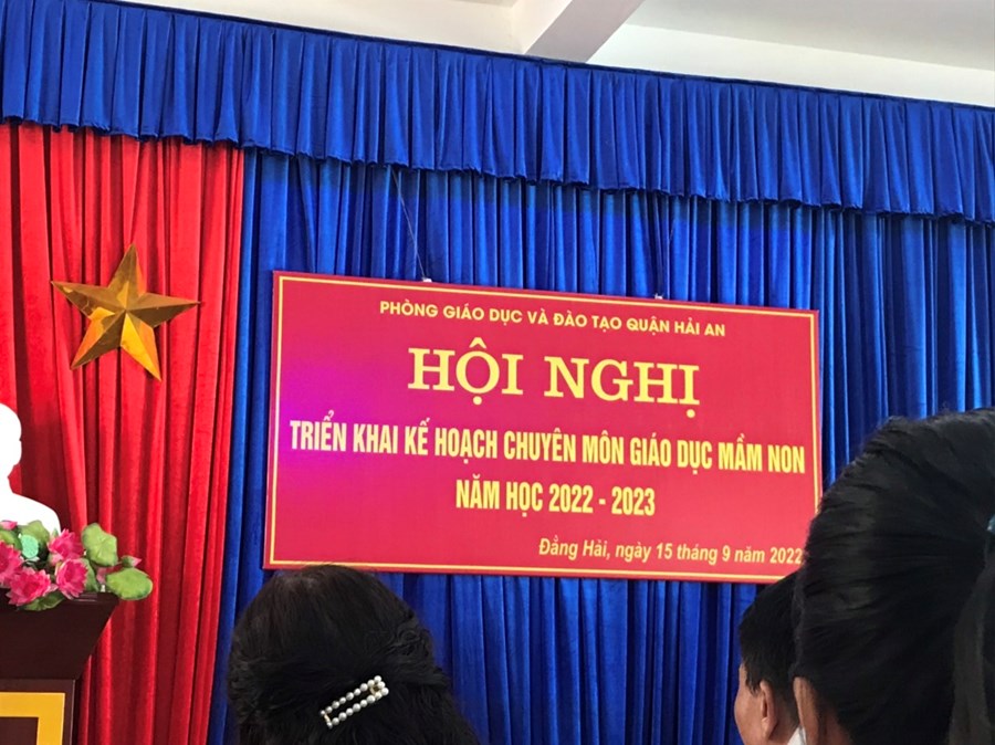 Hôm nay, ngày 15/9/2022 Phòng GD&ĐT quận Hải An tổ chức Hội nghị triển khai Kế hoạch chuyên môn mầm non năm học 2022-2023. Trường mầm non Đằng Lâm có các đồng chí trong Ban giám hiệu, các đồng chí cốt cán, Chủ tịch Công đoàn tham dự Hội nghị.